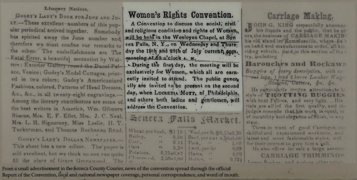 Back in the U.S., both women continued their abolitionist work, and the idea of a women’s convention lay dormant for eight years. Then in July 1848, while Lucretia was visiting Waterloo, New York, she met Elizabeth again. Fired up by conversation, they decided to act immediately — and ten days later, on July 19–20, 1848, the Seneca Falls Women’s Rights Convention was held.